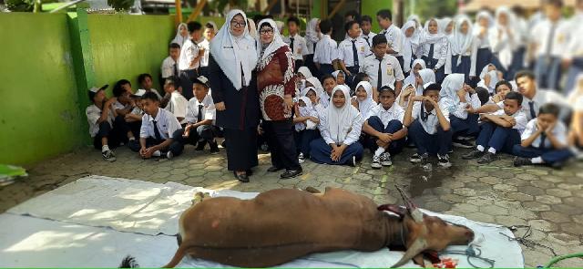Menyaksikan pemotongan hewan qurban bersama siswa/i |