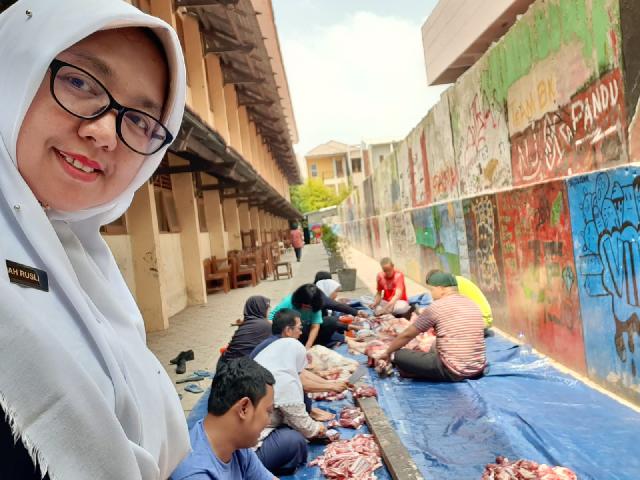 Pemotongan hewan qurban bersama guru-guru |
